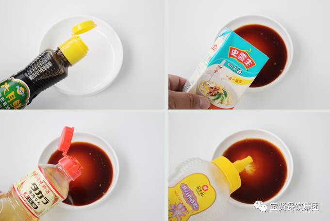 做法: 1.將醬油、高湯、味淋、白糖、蜂蜜與柴魚湯加入到一個容器中混合均勻,在火上加熱5分鐘待其冷卻制成照燒汁備用。